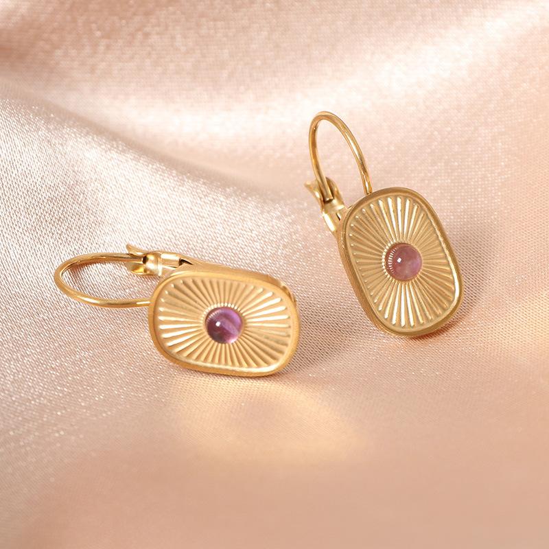 Модные серьги с аметистом, новые ретро-серьги из натурального камня, легкие, роскошные, высокого класса