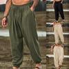 Хлопковые и льняные шаровары мужские уличные свободные джоггеры мужские брюки повседневные однотонные легкие и дышащие брюки
