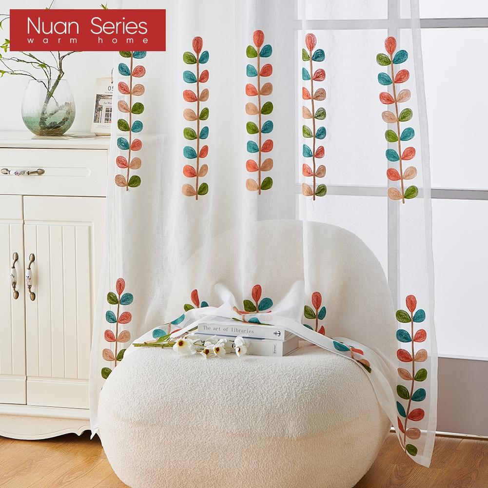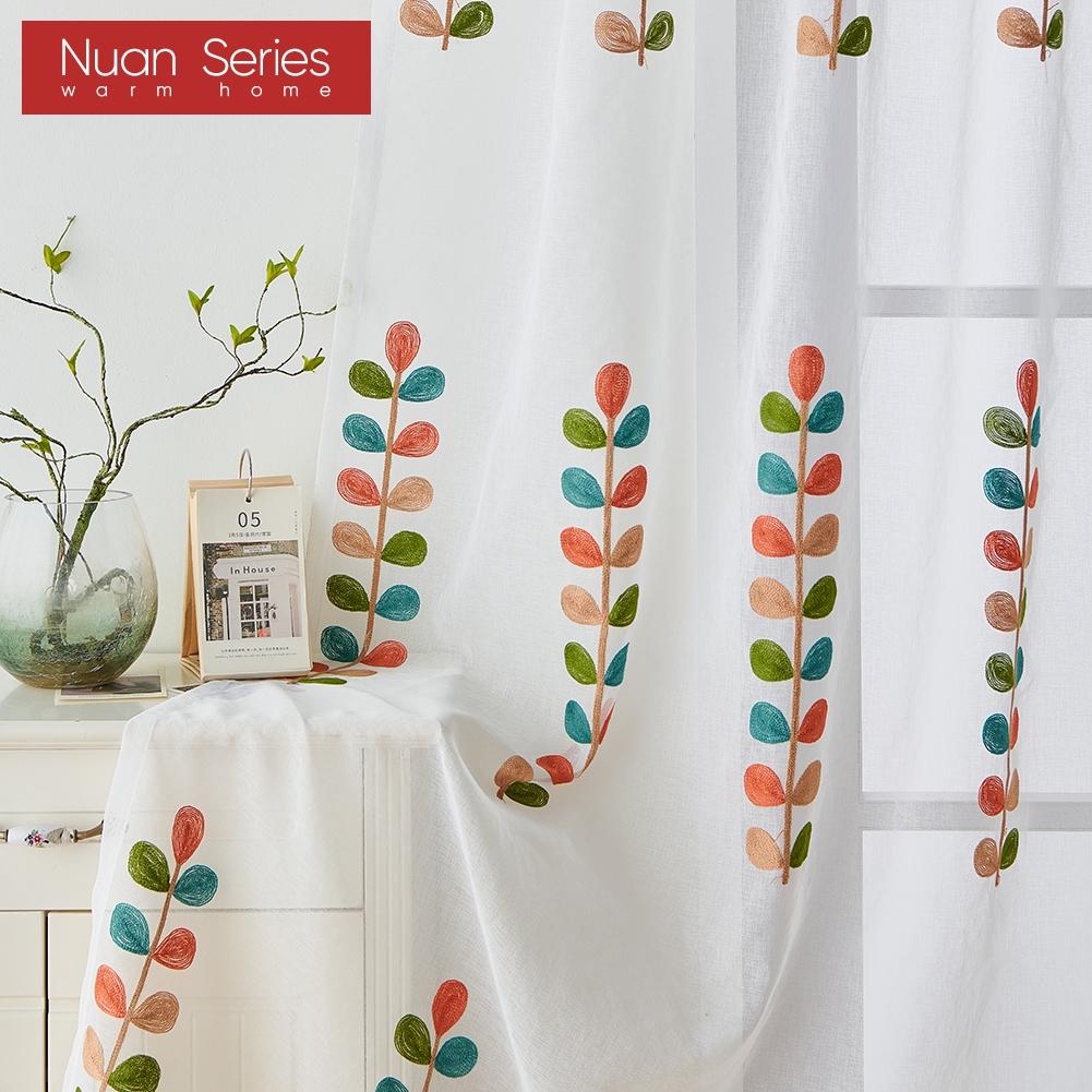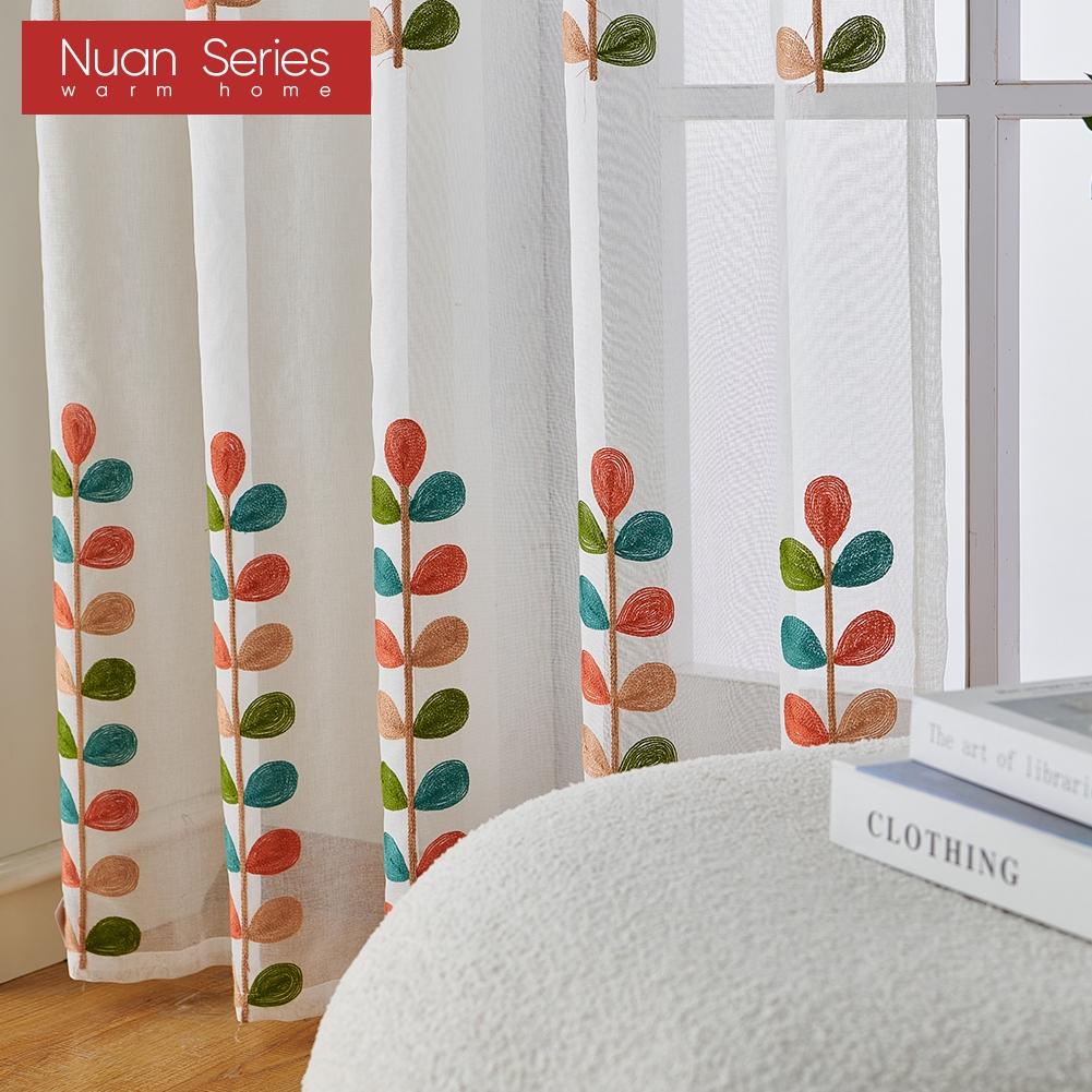1 шт., серия Nuan, белый тюль, современный сельский стиль, вышитая цветная прозрачная занавеска, занавеска на окно для гостиной, спальни, домашнего декора