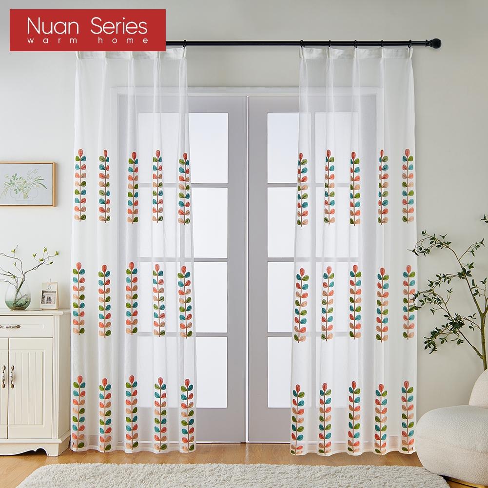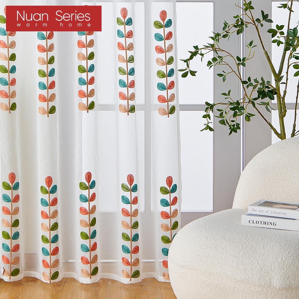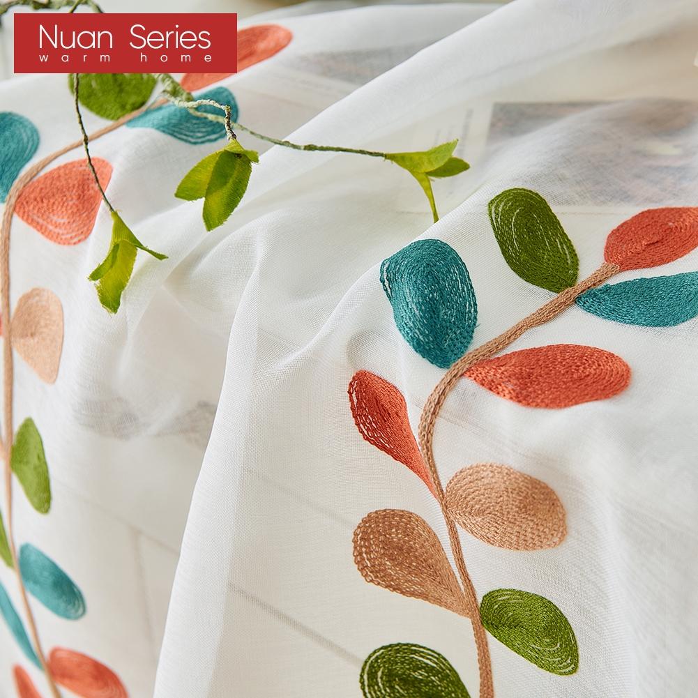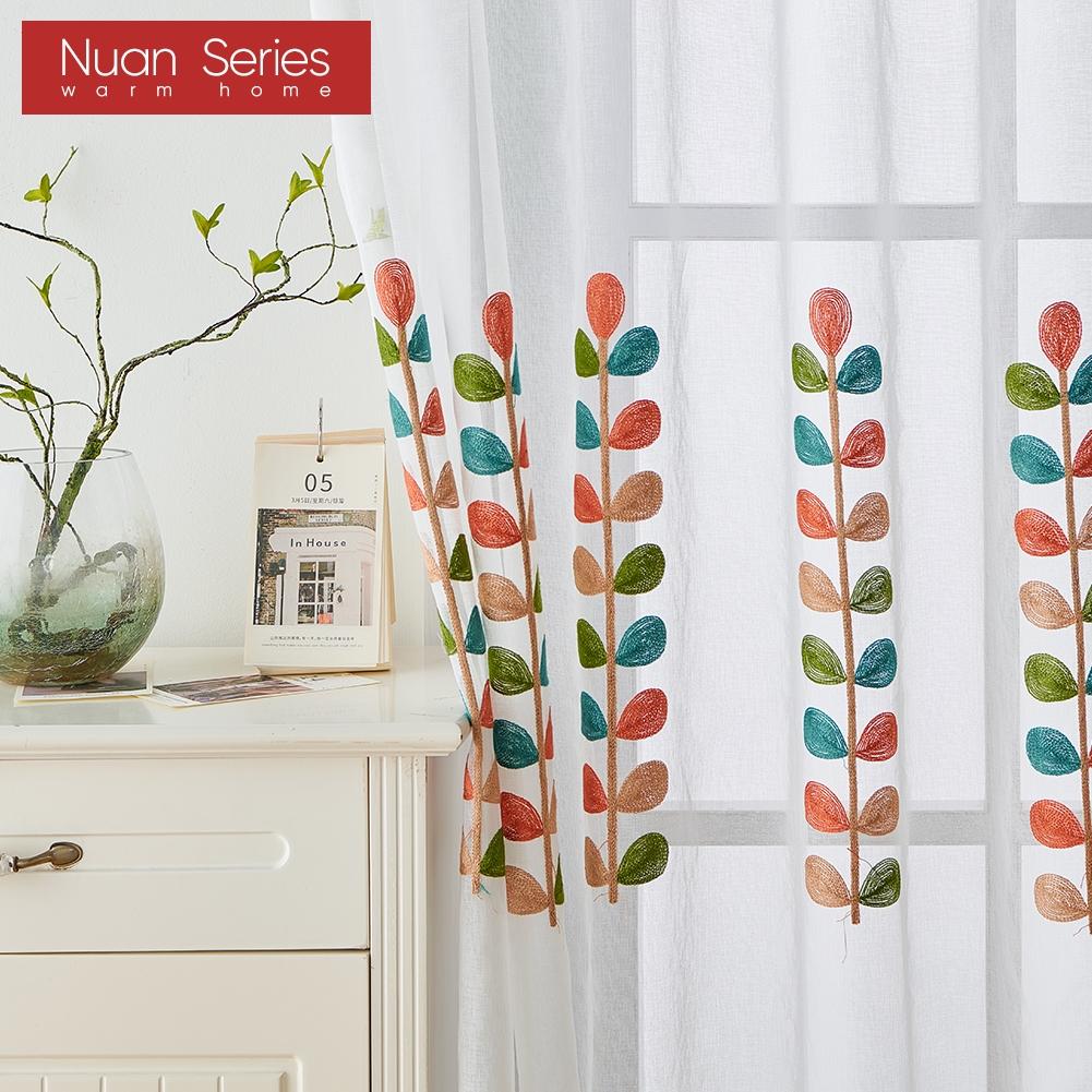 1 шт., серия Nuan, белый тюль, современный сельский стиль, вышитая цветная прозрачная занавеска, занавеска на окно для гостиной, спальни, домашнего декора