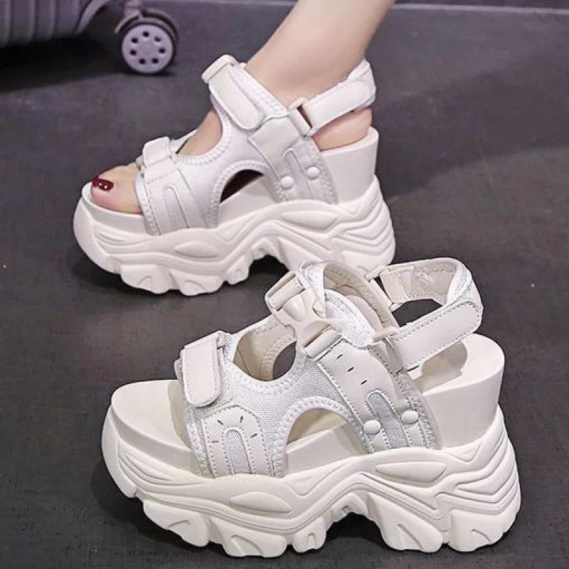 Женские босоножки с толстой подошвой на платформе и высоком каблуке. Мокасины. Спортивные сандалии с двумя носками и волшебной подошвой. Увеличивают рост. — купить товар онлайн с бесплатной доставкой по всему миру!