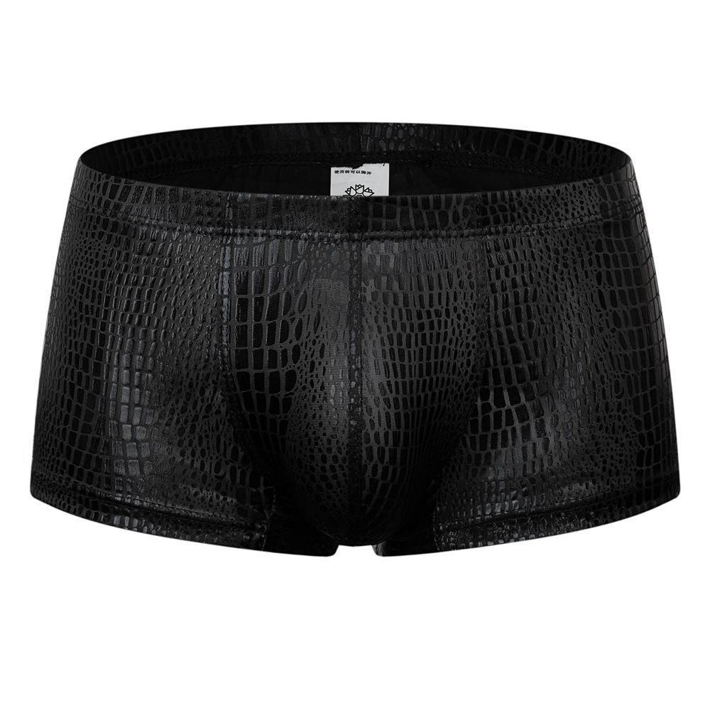 Мужские трусы-боксеры, мужские боксерские шорты из искусственной кожи, мужские трусы с U-образным карманом, сексуальное нижнее белье для геев, мужские боксеры, нижнее белье, клубная одежда