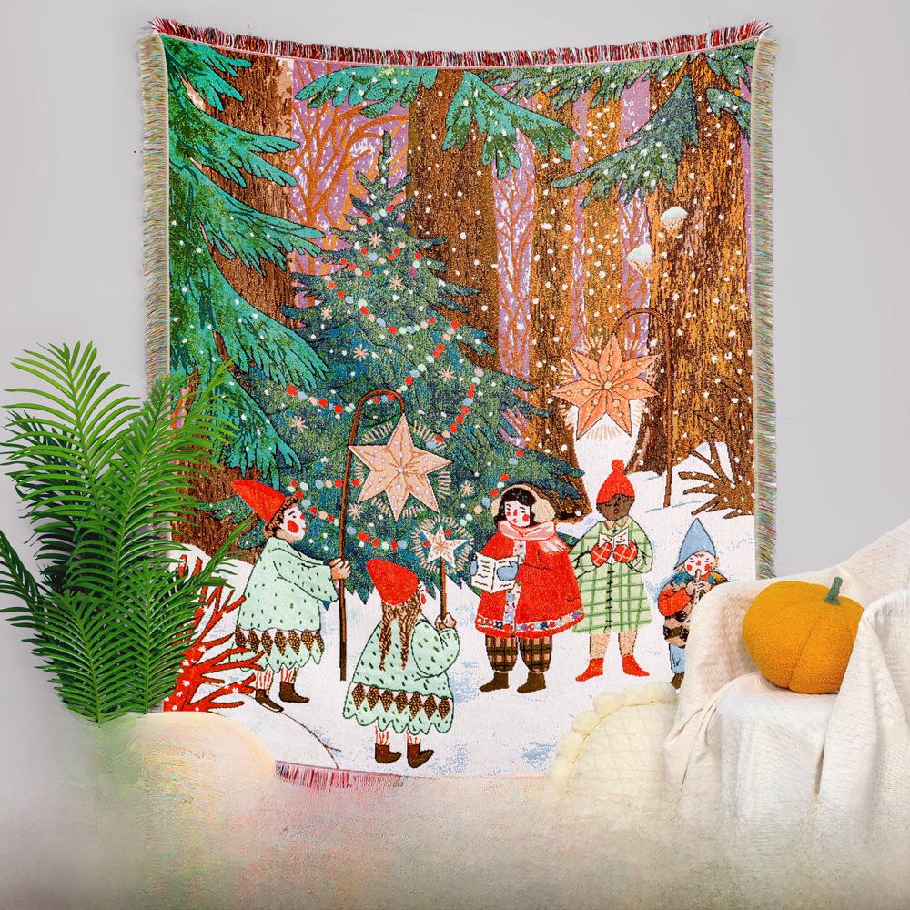 Покрывало из гобелена в стиле «Богемское рождество» — толстое, антикошачье покрытие для дивана