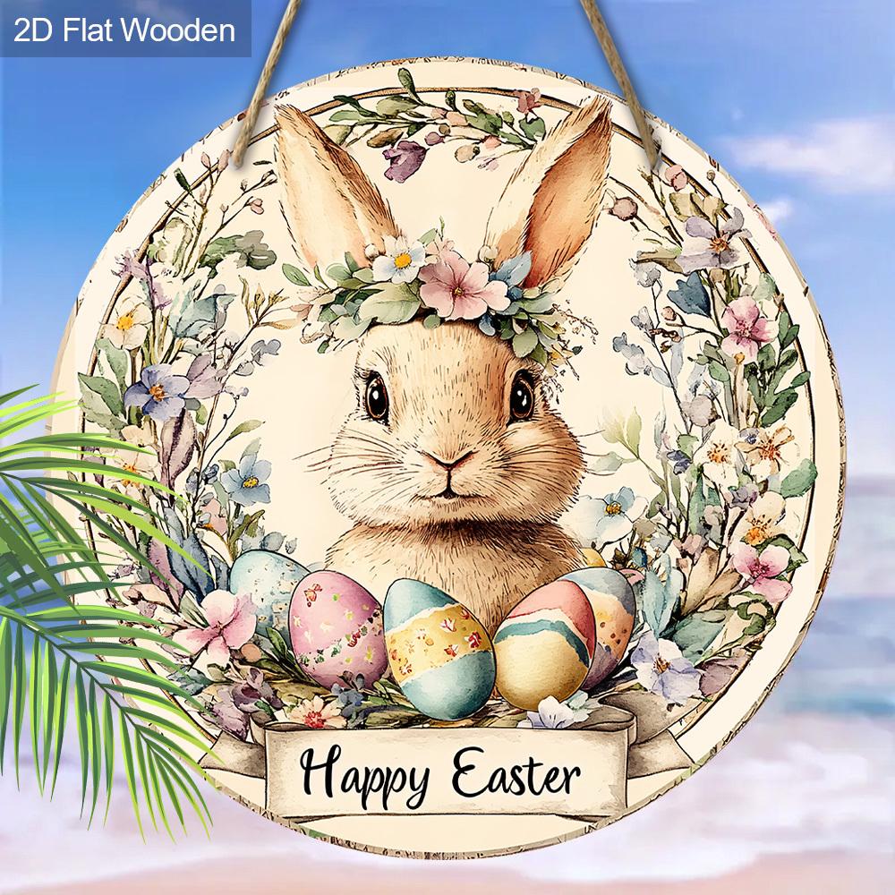 Классические пасхальные украшения, деревянное украшение - "Счастливой Пасхи", кролик, яйцо, венок - пасхальные подарки - для двери, стены, дома, комнаты, фермы, улицы, магазина