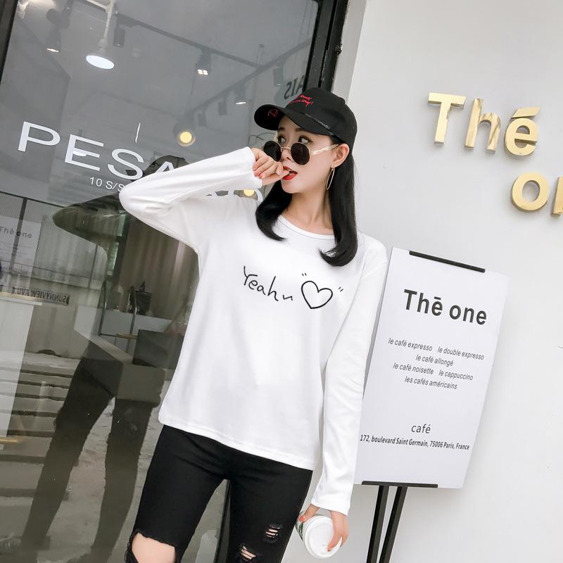 Осень Новинка Корейский стиль Универсальная Свободная Базовая Рубашка Принт Любовь Студенческая Футболка с Длинным Рукавом для Женщин — купить товар онлайн с бесплатной доставкой по всему миру!