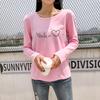 Осень Новинка Корейский стиль Универсальная Свободная Базовая Рубашка Принт Любовь Студенческая Футболка с Длинным Рукавом для Женщин