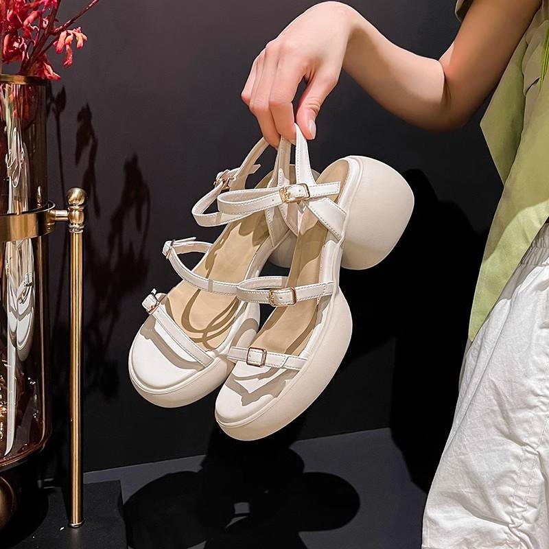 Легкая и мягкая кожа, когда наступаешь на дерьмо, босоножки на высоком каблуке для женщин, летние новые толстые каблуки, толстая подошва, не устают ноги — купить товар онлайн с бесплатной доставкой до всему миру!