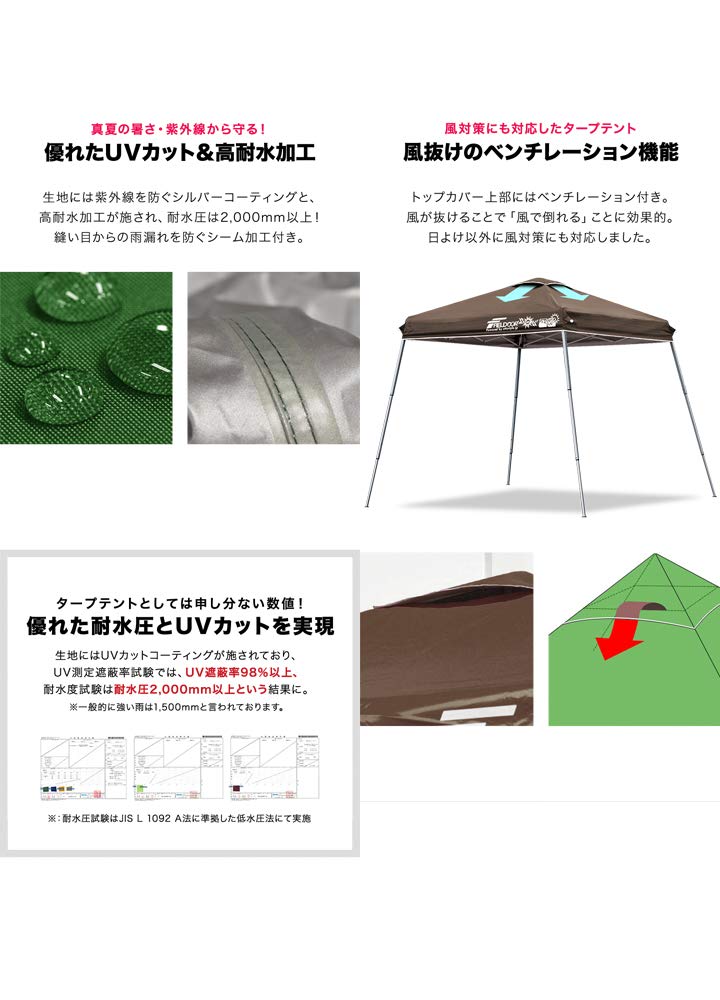 ✅ [Подробности о продукте] ■Размер в собранном виде: (ок.) 2,4м x 2,4м x 2,2м *Максимальные размеры/при хранении: (ок.) 17см x 17см x 74см ■Вес: (ок.) 5.6 кг ■Материал: Рамка: Алюминий/Ткань: Полиэстер ■Устойчивость к давлению воды: 2000 мм или более ■Аксессуары: Веревка, колышки, специальный футляр для хранения, инструкция по эксплуатации (японский язык) ■Особые примечания: *В этом верхнем чехле нет молнии для крепления бокового сиденья.. *Цвет продукта может отличаться в зависимости от вашего монитора.. Кроме того, технические характеристики и конструкции могут быть изменены без предварительного уведомления в целях улучшения.