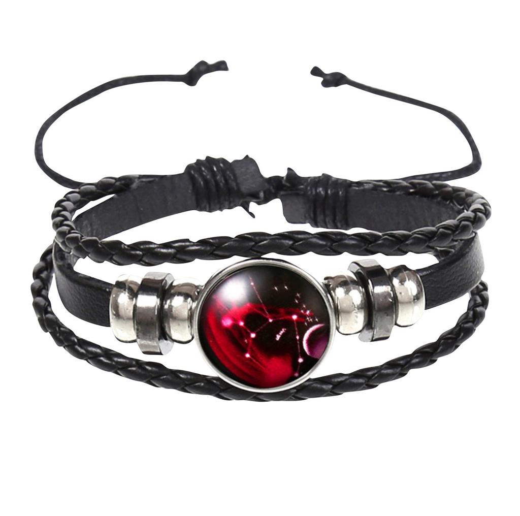 Ювелирные изделия Винтаж Кожаный Веревочный Набор Оплетки Браслет Из Драгоценных Камней Полный Набор Знаков Зодиака