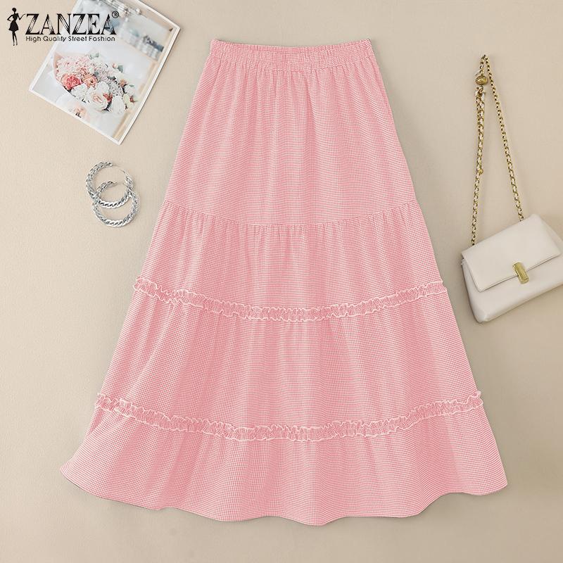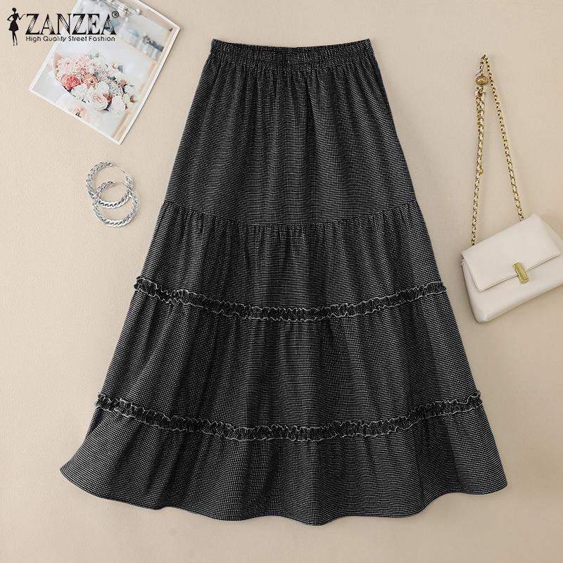ZANZEA Женские свободные повседневные длинные юбки с эластичной талией и принтом