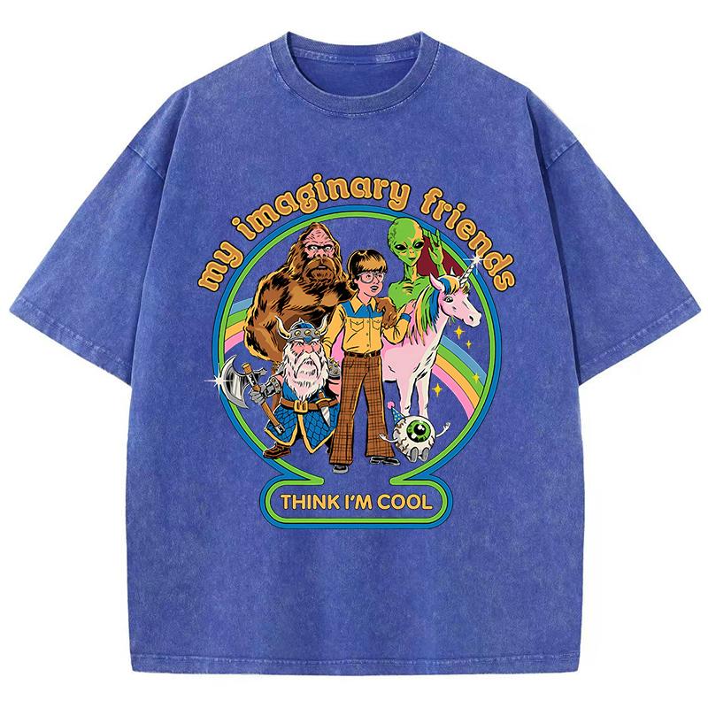 Мои воображаемые друзья думают, что я крутой, стираная ретро-футболка для мужчин, мягкая повседневная футболка большого размера, хлопковая футболка, свободная футболка
