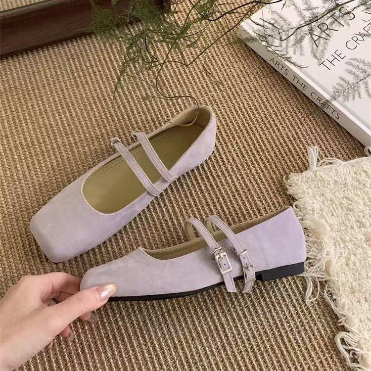Туфли Мэри Джейн из замши с двойной пряжкой в стиле ретро, женские одинарные туфли 2025 года, квадратная носовая часть, плоская подошва, туфли для бабушек, корейская версия, женская обувь