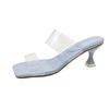 Легкие и стильные прозрачные босоножки на высоком каблуке для женщин, желающих похудеть, лето 2025 года, новые туфли на тонком каблуке средней высоты с квадратным носком