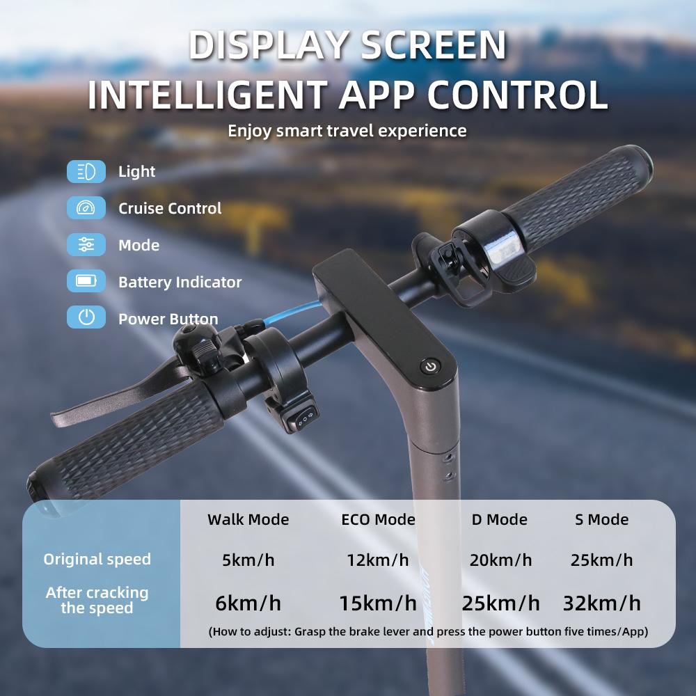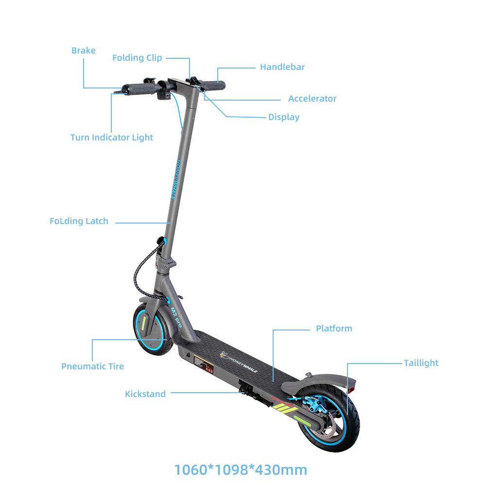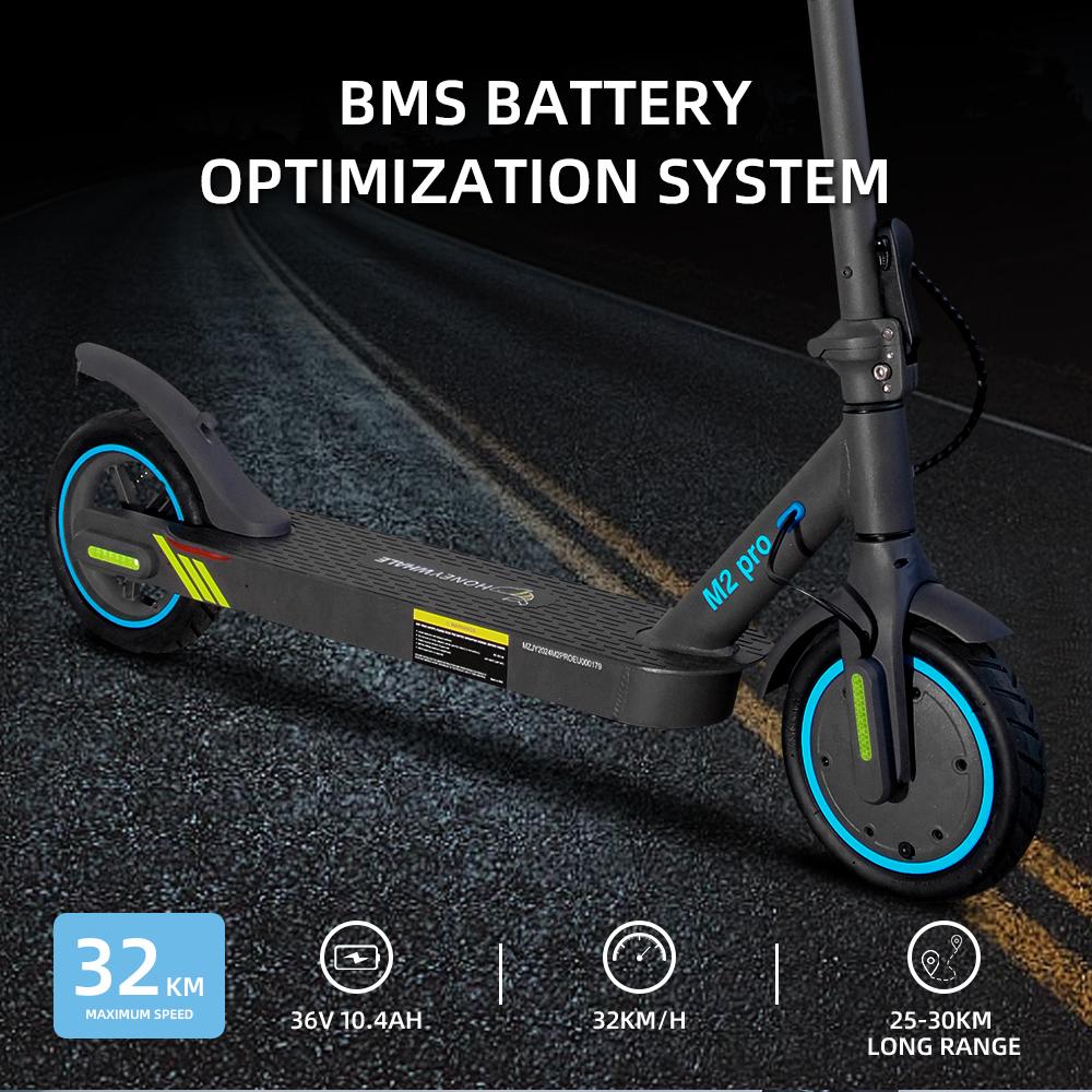 M2 Pro оснащен мощным двигателем 350 Вт.(Мгновенная максимальная мощность 500 Вт), развивая скорость до 32 км/ч. Максимальный уклон, который он может преодолеть, составляет 15°.