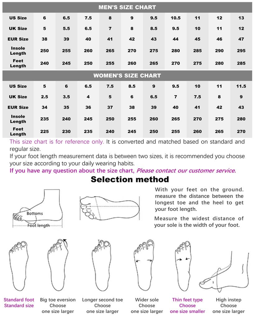 Уведомление: вальгусная деформация большого пальца ноги (выберите один размер вверх), второй палец длиннее (выберите один размер вверх), более широкая подошва (выберите один размер вверх), тонкая нога (выбрать на один размер меньше), высокий подъем (выберите один размер вверх) код)