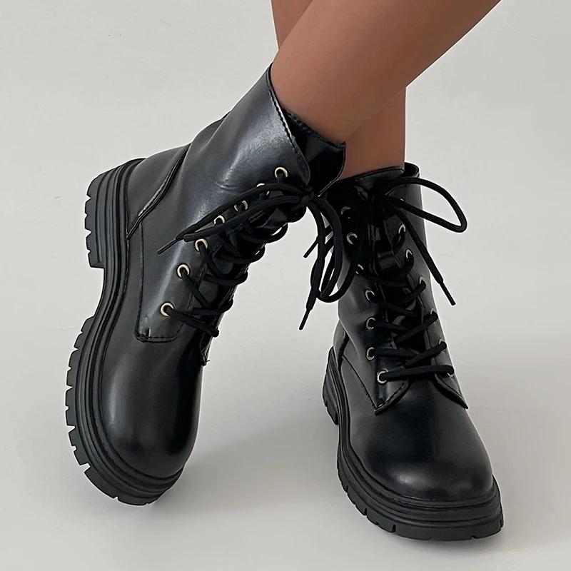 Ботильоны Rimocy из черной искусственной кожи для женщин на низком каблуке со шнуровкой, модные женские нескользящие ботильоны на платформе — купить товар онлайн с бесплатной доставкой по всему миру!