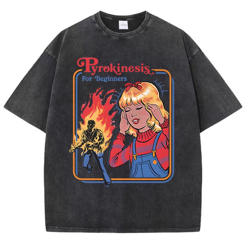 Пирокинез для начинающих, стираные ретро мужские футболки, модная хлопковая одежда, свободная футболка большого размера — купить товар онлайн с бесплатной доставкой по всему миру!