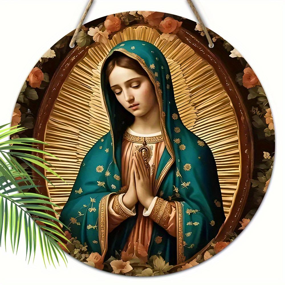 Деревянная табличка «Богоматерь Гваделупская», классическая Нуэстра Сеньора Де Гваделупская с цветочным узором, плоская двухмерная табличка для бара, сада и декора кофейни