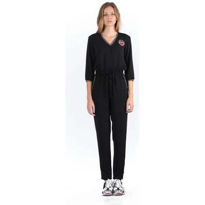 Combinaison pantalon femme Kaporal - Noir - Manches 3/4 - Coeur brodé - Taille L