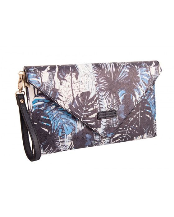 Sac pochette - CHRISTIAN LACROIX - Amatista - Imprimé Amazonie bleu - Toile enduite - Bandoulière amovible