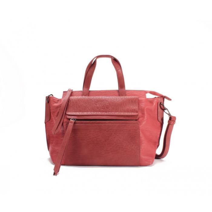 Sac Cabas - LE TEMPS DES CERISES - Kaori 1 - Terracotta Rouge - Bandoulière - Format A4