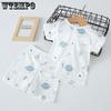 Комплект с короткими рукавами, летний тонкий детский кардиган, домашняя одежда с кондиционером, мужские и женские детские пижамы, летняя одежда