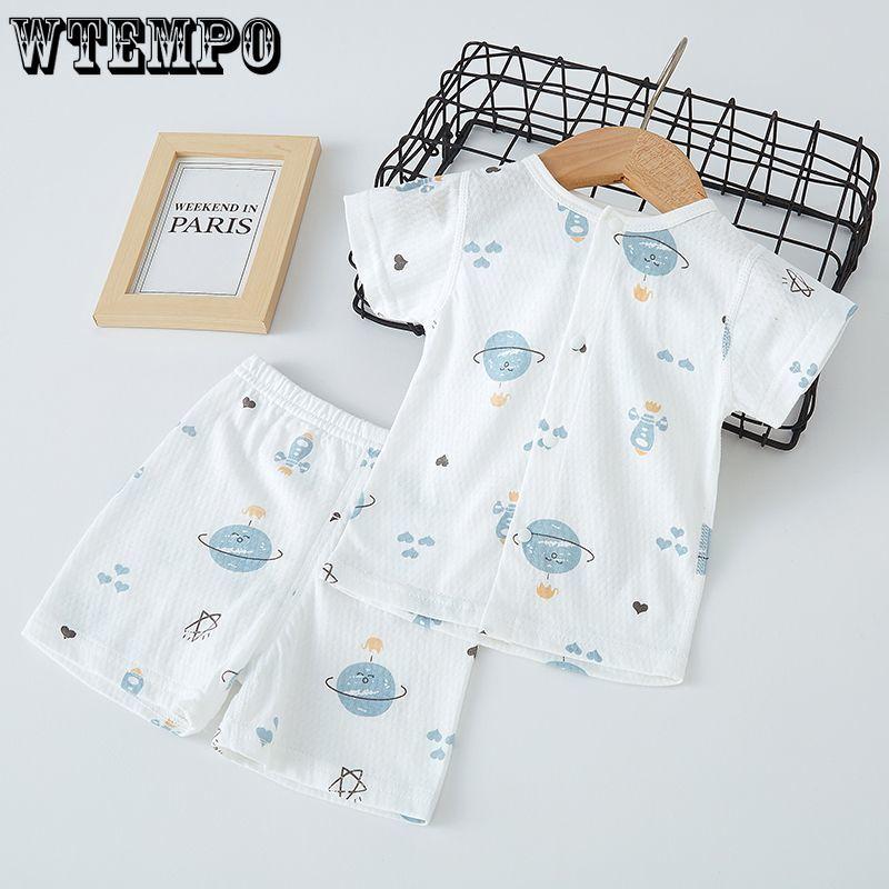 Комплект с короткими рукавами, летний тонкий детский кардиган, домашняя одежда с кондиционером, мужские и женские детские пижамы, летняя одежда — купить товар онлайн с бесплатной доставкой по всему миру!
