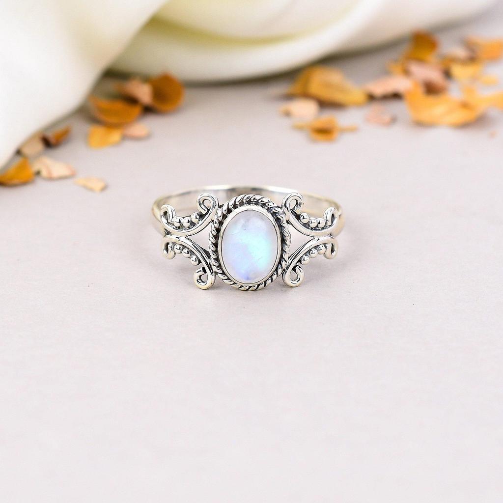 Радужный Лунный Камень Серебро 925 пробы Овальный Драгоценный Камень Бохо стиль Ручной работы Кольцо для Женщин — купить товар онлайн с бесплатной доставкой по всему миру!