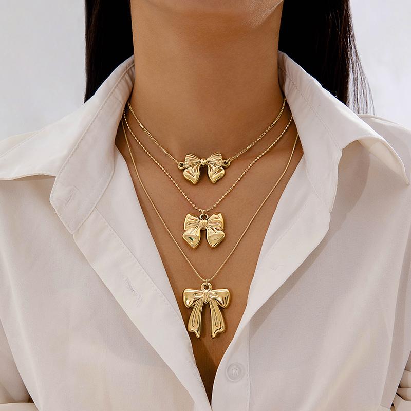 Простой 3D галстук-бабочка многослойная цепочка кулон ожерелье ювелирные изделия для женщин девочек вечеринка поездка сладкий стиль бижутерия