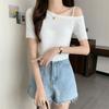 Футболка High End Chic and Beautiful с косым воротником и открытым плечом, короткий трикотажный топ, летняя футболка Ice Silk с короткими рукавами