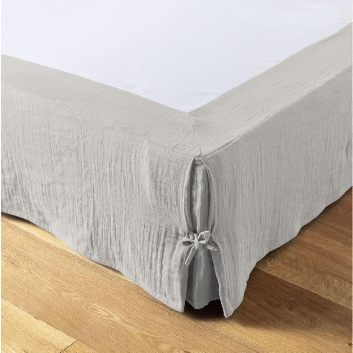 Cache-sommier - Gaïa - 90 x 190 cm - Gaze de coton - Couleur Nuage - Style Classique
