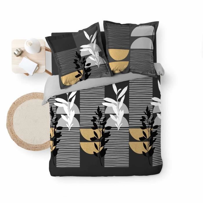 Parure housse de couette - Asiore - 260x240 cm - 100% Coton - 2 Taies - Gris