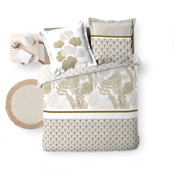 Parure Housse de couette - Art deco - 220 x 240 cm - 100% percale coton - 2 Taies d'oreiller - Beige — купить товар онлайн с бесплатной доставкой до всему миру!
