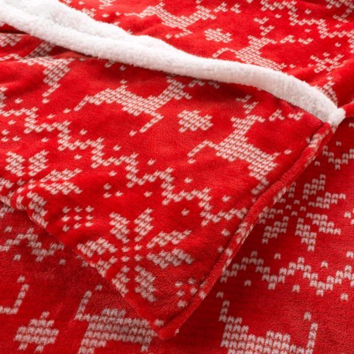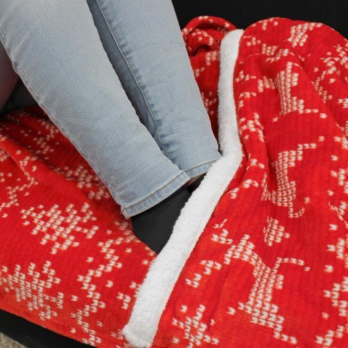 Plaid - Holly - 125 x 150 cm - Flanelle - Poche pour pieds - Rouge