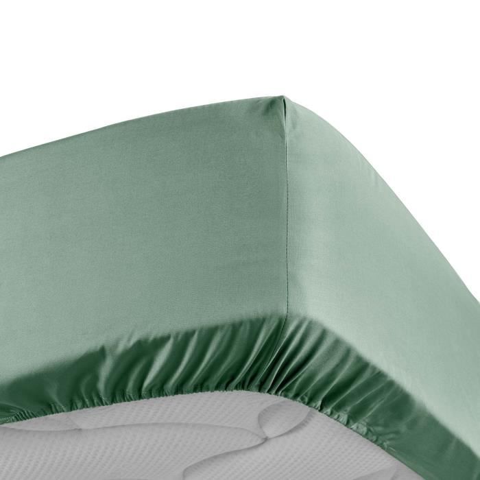 Drap housse - Percale de coton - Tilleul - 140 x 190 cm - Bonnet 30 cm - Lavage à 30° — купить товар онлайн с бесплатной доставкой до всему миру!
