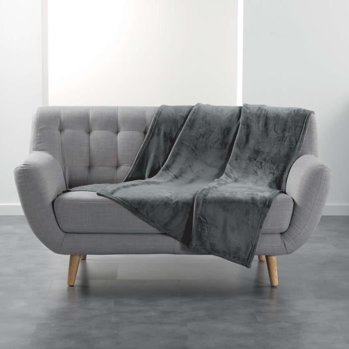 Plaid - Flanou - Gris - 180x220 cm - Flanelle - Polyester - Doux et Confortable
