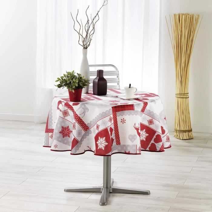 Nappe de table - Winter Love - 180 cm - Rouge - Synthétique - Rectangulaire