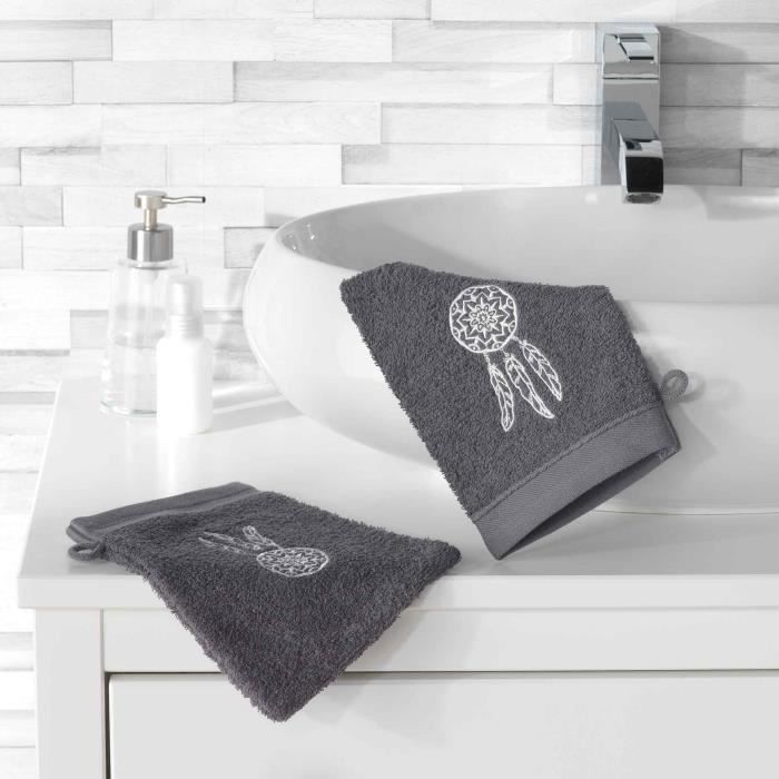 Serviette de toilette - Attrape rêves - Anthracite - 30 x 50 cm - 100% coton - Lavable en machine