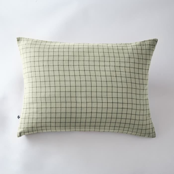 Taie d'oreiller - Gaia Mixe - 50 x 70 cm - Gaze de Coton - Vert d'eau - Carreaux