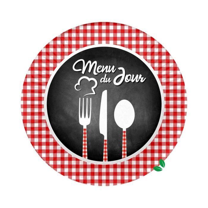 Assiettes en carton - Menu du jour - 23 cm - Ensemble de 10 - Rouge - Écologique
