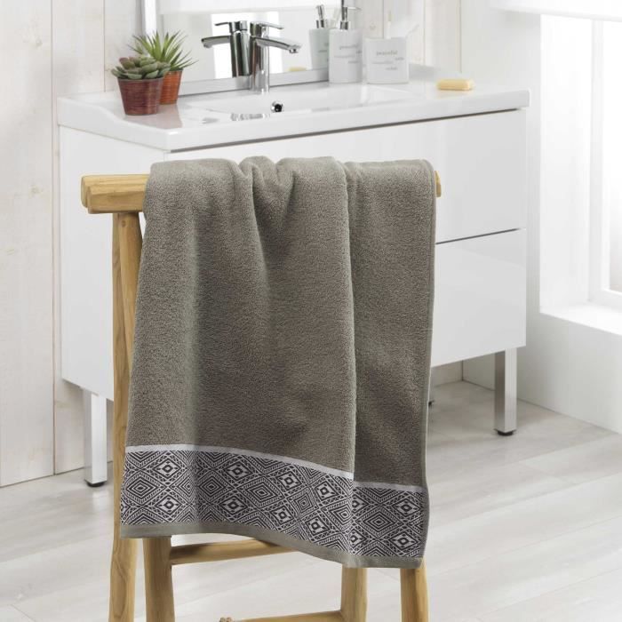 Drap de douche - Estebane - Kaki - 70 x 130 cm - Style ethnique - Lavable en machine