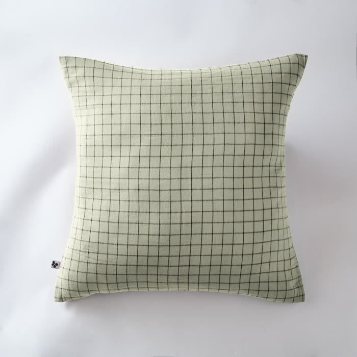 Taie d'oreiller - Gaia - Mixe - Gaze de Coton - 60 x 60 cm - Vert d'eau - Carreaux