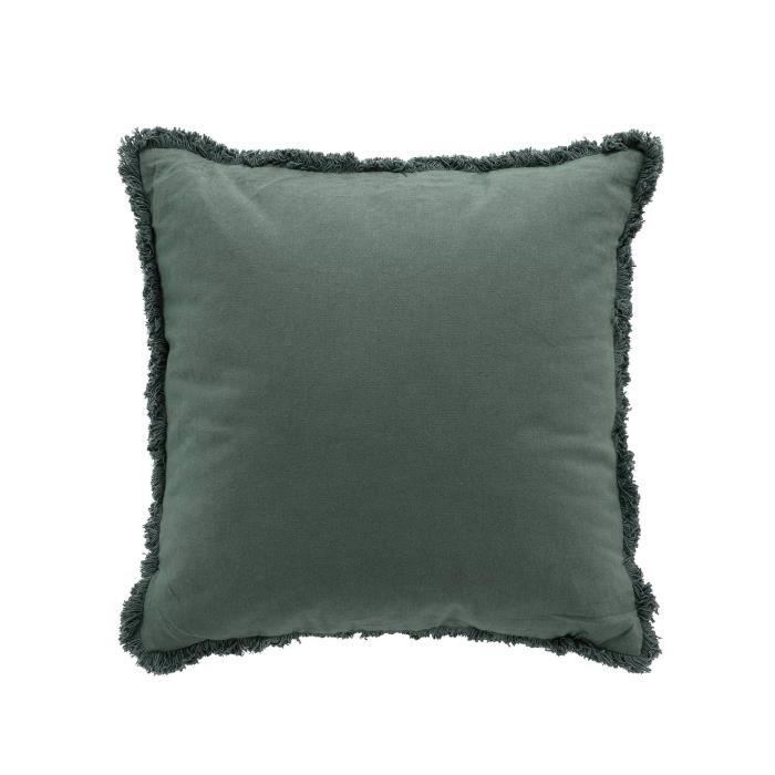 Coussin - Evea - 45 x 45 cm - Vert - Déhoussable - Franges