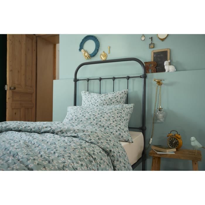 Housse de couette - Marguerite - 140 x 200 cm - Gaze de coton - Bleu et blanc - Finition boutons en bois