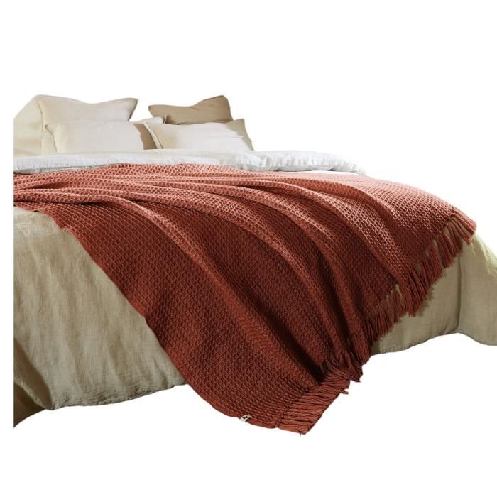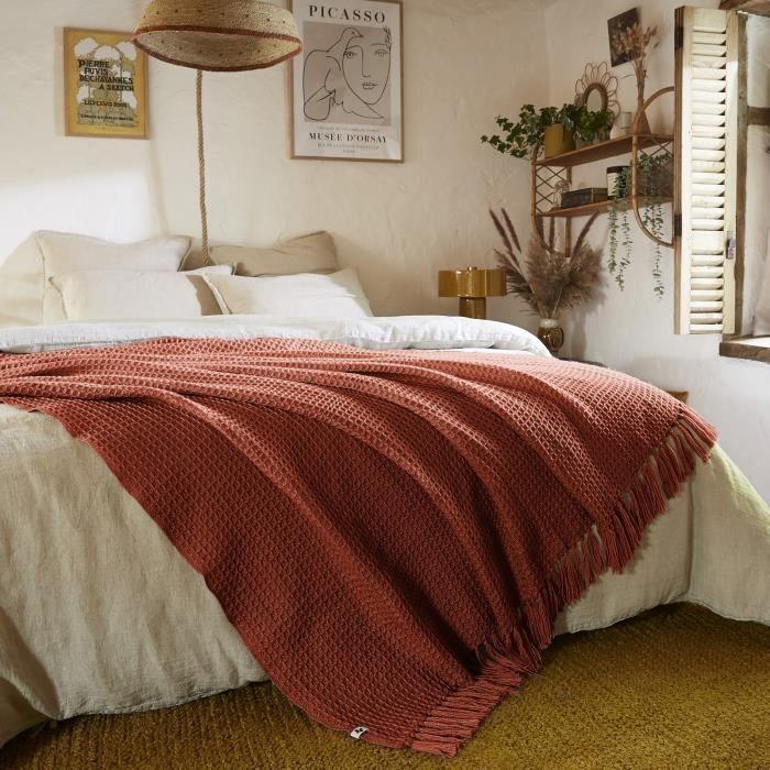 Couvre lit - Gabin - Terracotta - 240 x 260 cm - 100% PET - Franges 10 cm