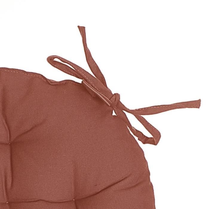 Galette de chaise ronde - Terracotta - 38 cm - 100% Coton - Non déhoussable - 4 liens d'attache