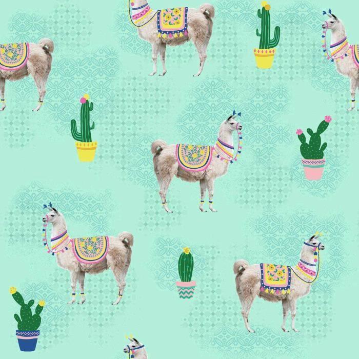 Nappe - Lamas - Toile cirée - Bleu - Rectangulaire - Lavable - 140 cm de large
