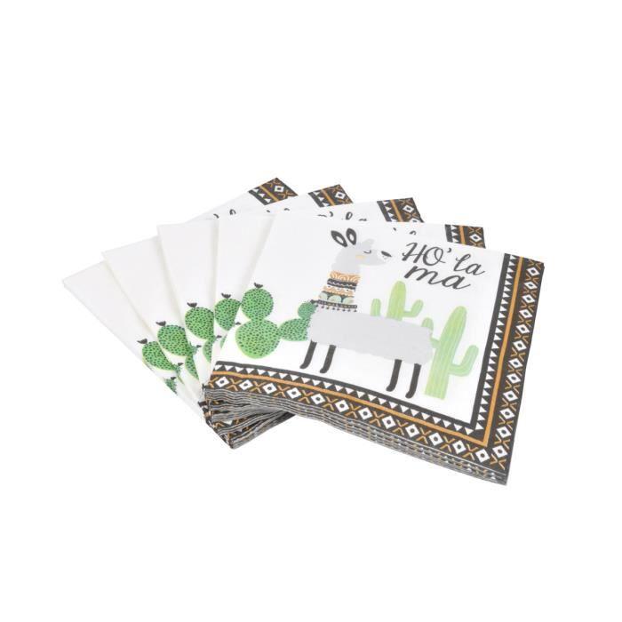 Serviettes en papier - Ho Lama - Lot de 20 - Vert - 33 x 33 cm - Pratiques pour pique-nique