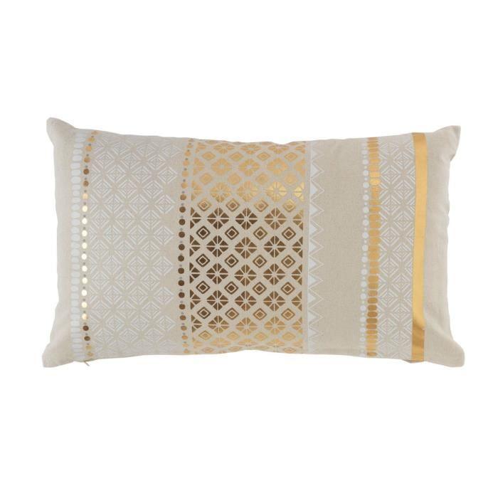 Coussin déhoussable Gayas - Couleur Beige - Motifs Or et blanc - Dimensions 30 x 50 cm - Style Ethnique