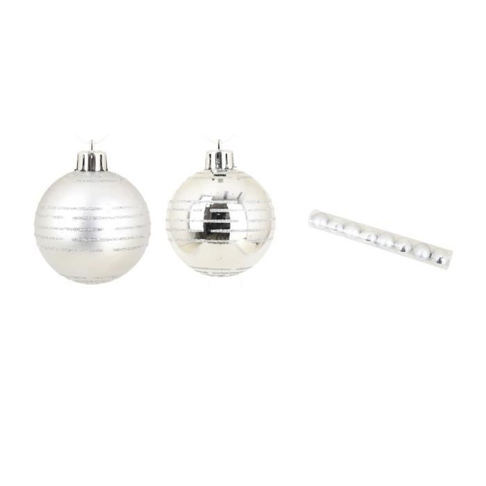 Boules de Noël - Décor Rayures Argent - Set de 8 - Diamètre 6 cm - Assortiment Mat et Brillant - Mixte